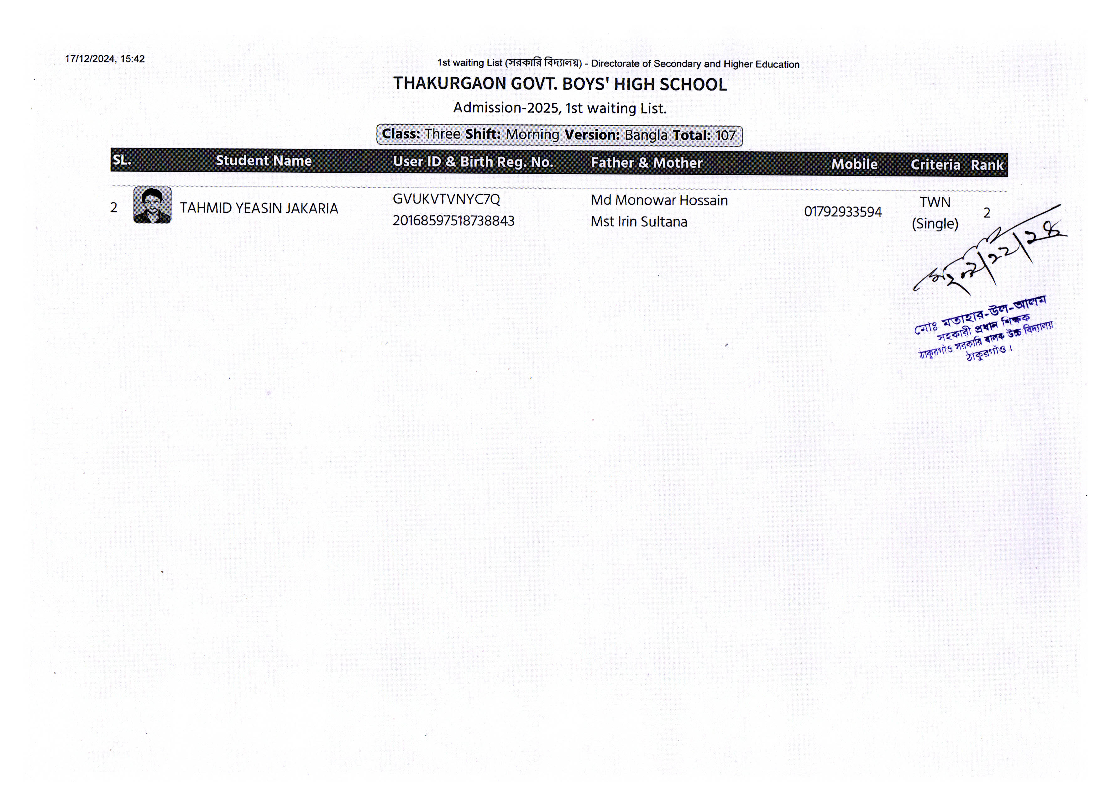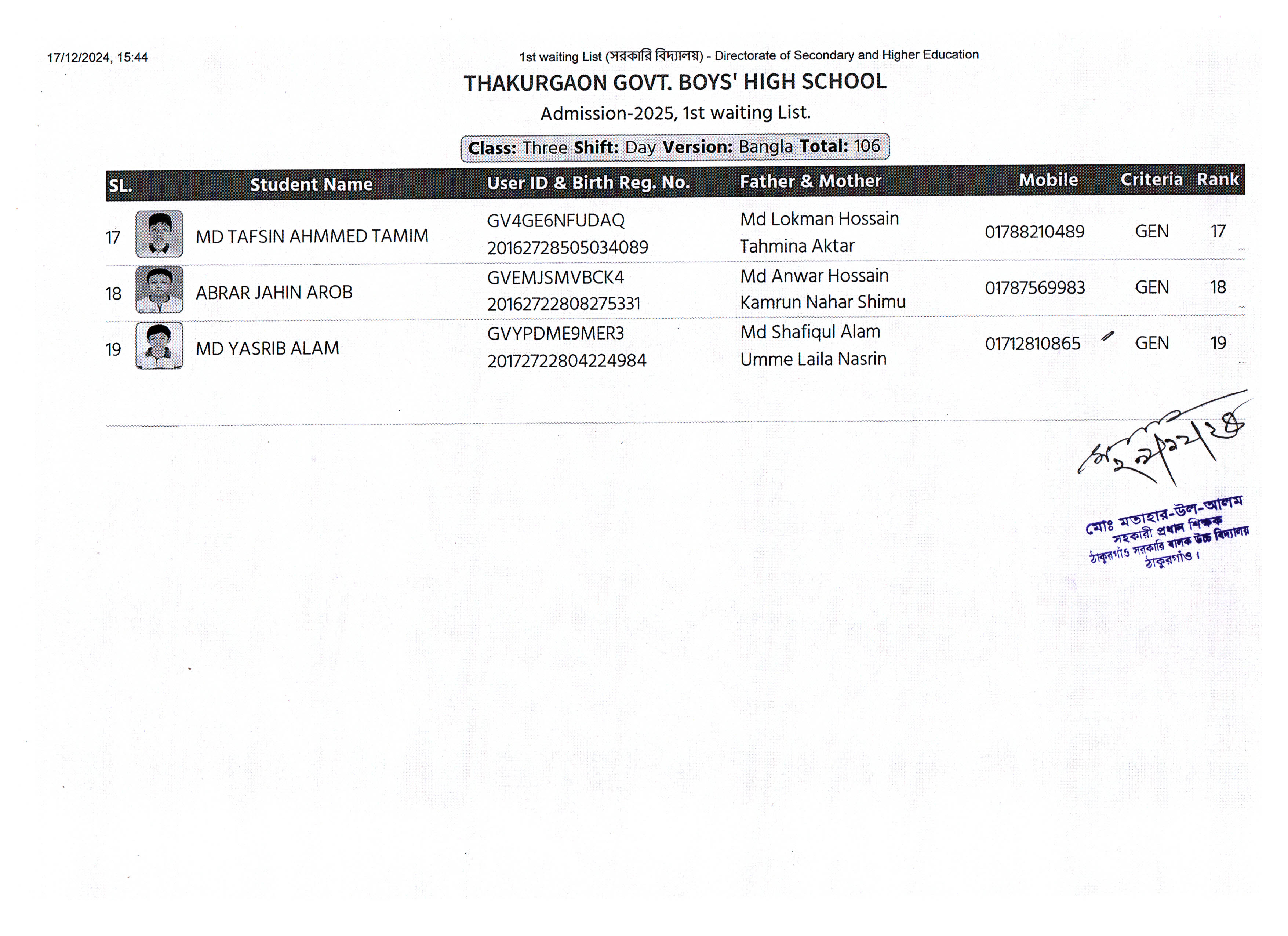 ২০২৫ শিক্ষাবর্ষে ১ম অপেক্ষমান তালিকা হতে ৩য় শ্রেণিতে ভর্তি বিজ্ঞপ্তি -