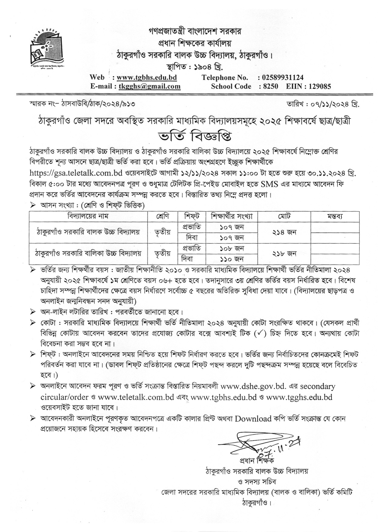 ২০২৫ শিক্ষাবর্ষে ৩য় শ্রেণিতে ভর্তি বিজ্ঞপ্তি ও নিয়মাবলী