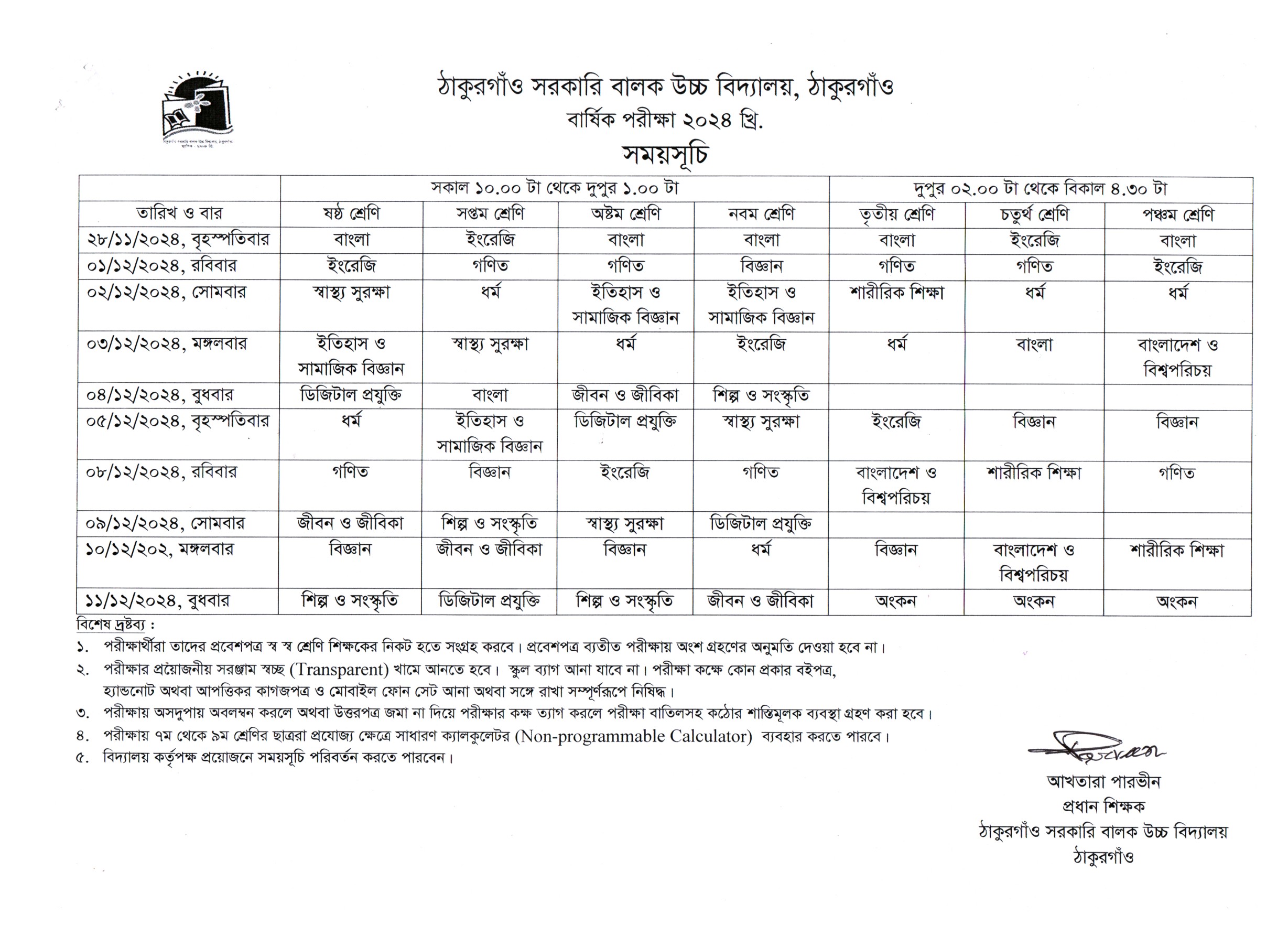 বার্ষিক পরীক্ষা ২০২৪ এর সংশোধিত সময়সূচি
