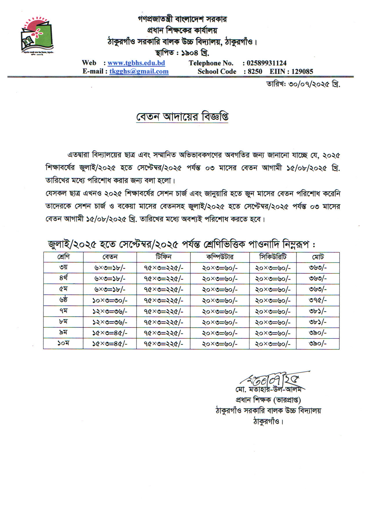 বেতন আদায়ের নোটিশ