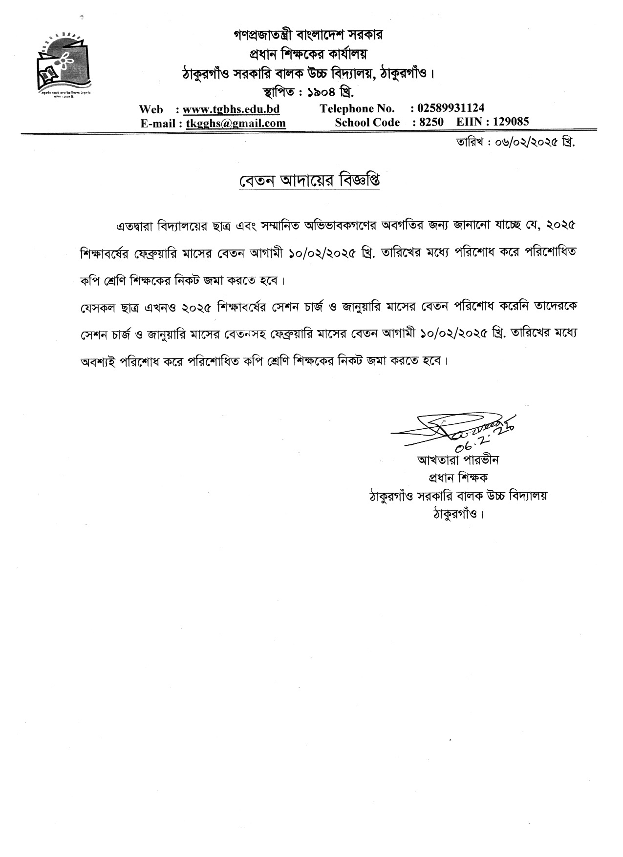 বিদ্যালয়ের শৃঙ্খলা সংক্রান্ত বিজ্ঞপ্তি