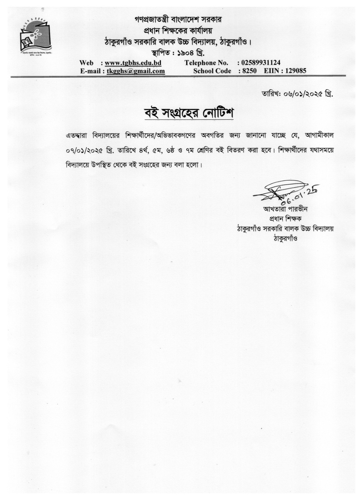 বই বিতরণ সংক্রান্ত নোটিশ