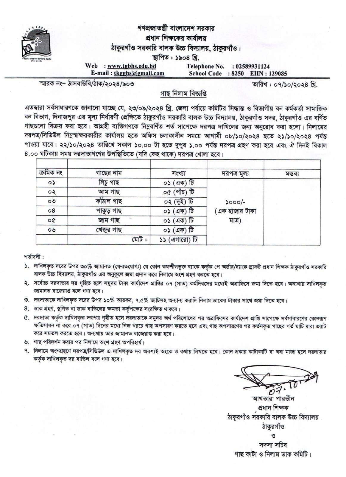 গাছ নিলাম বিজ্ঞপ্তি