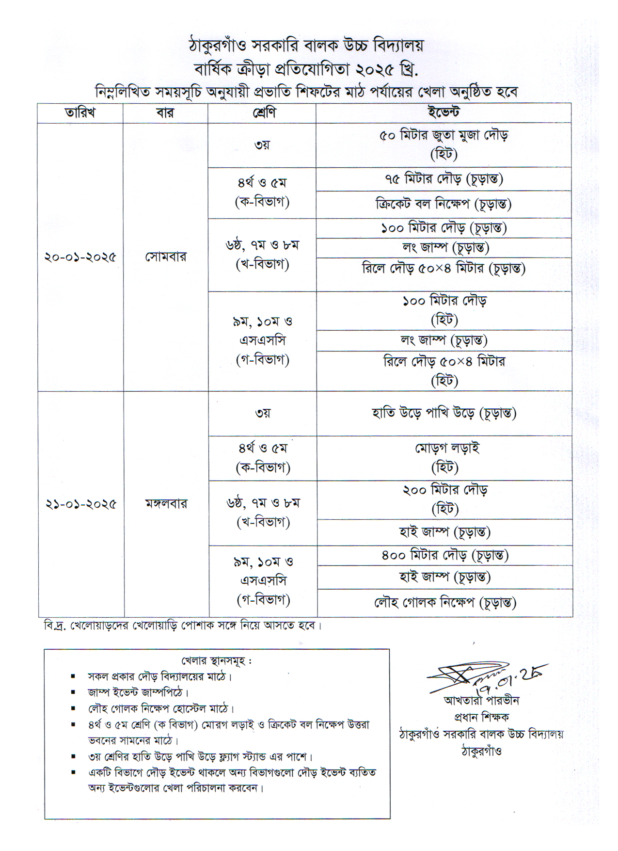 বিদ্যালয়ের শৃঙ্খলা সংক্রান্ত বিজ্ঞপ্তি