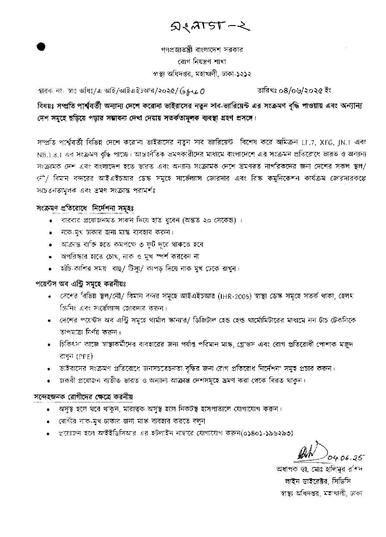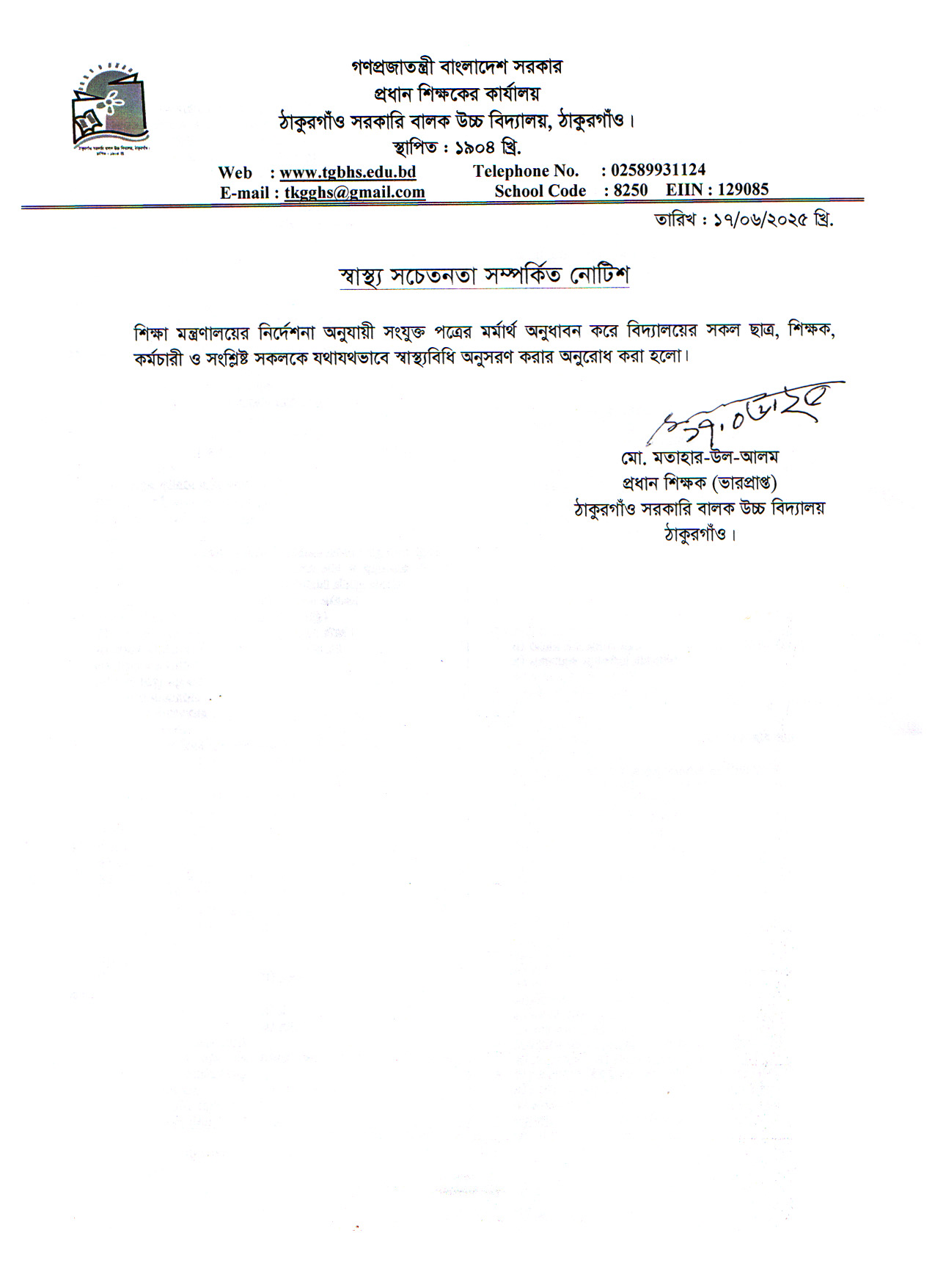 স্বাস্থ্য সচেতনতা সম্পর্কিত নোটিশ
