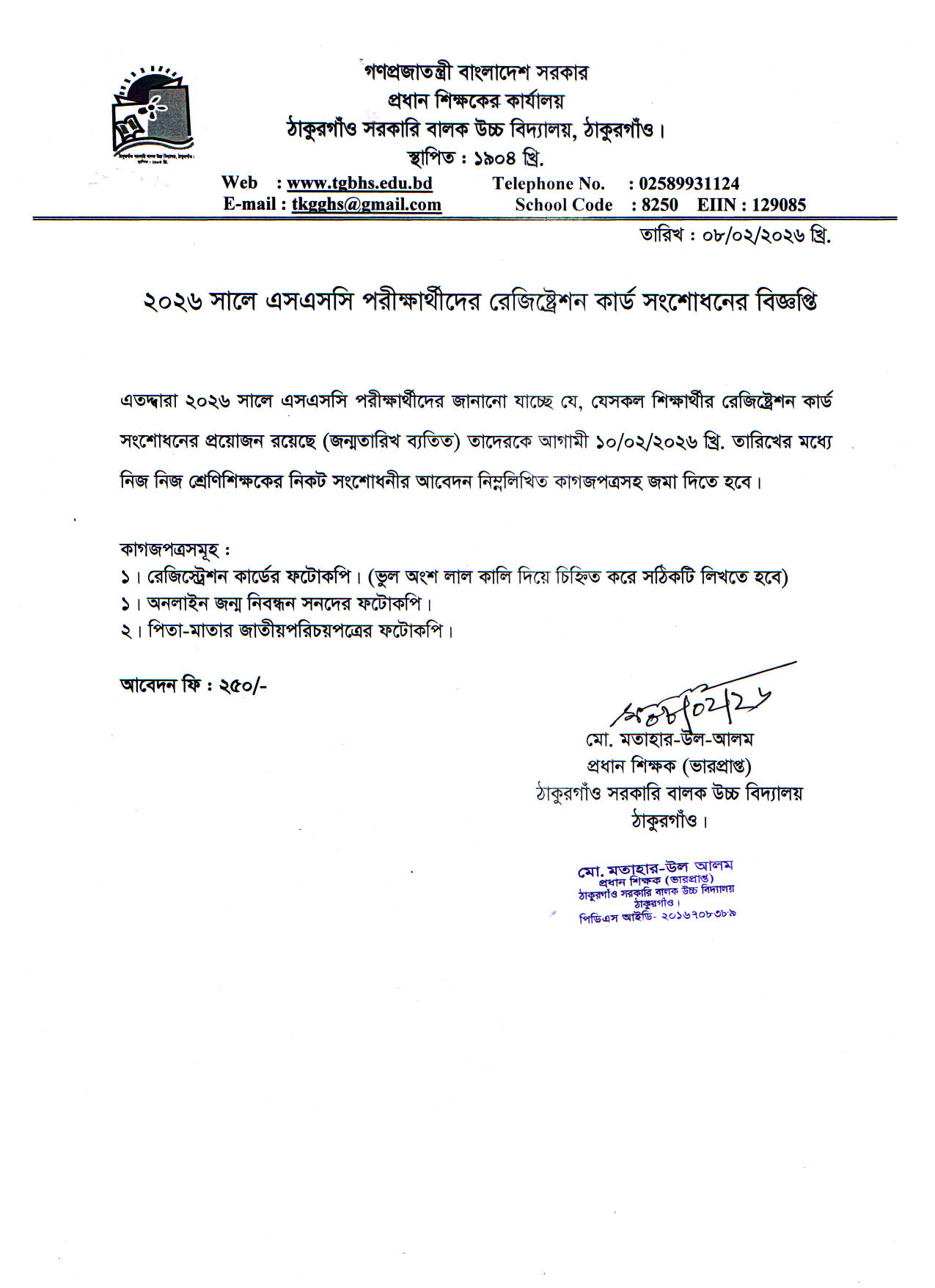 ২০২৬ সালে এসএসসি পরীক্ষার্থীদের রেজিস্ট্রেশন সংশোধন সংক্রান্ত বিজ্ঞপ্তি