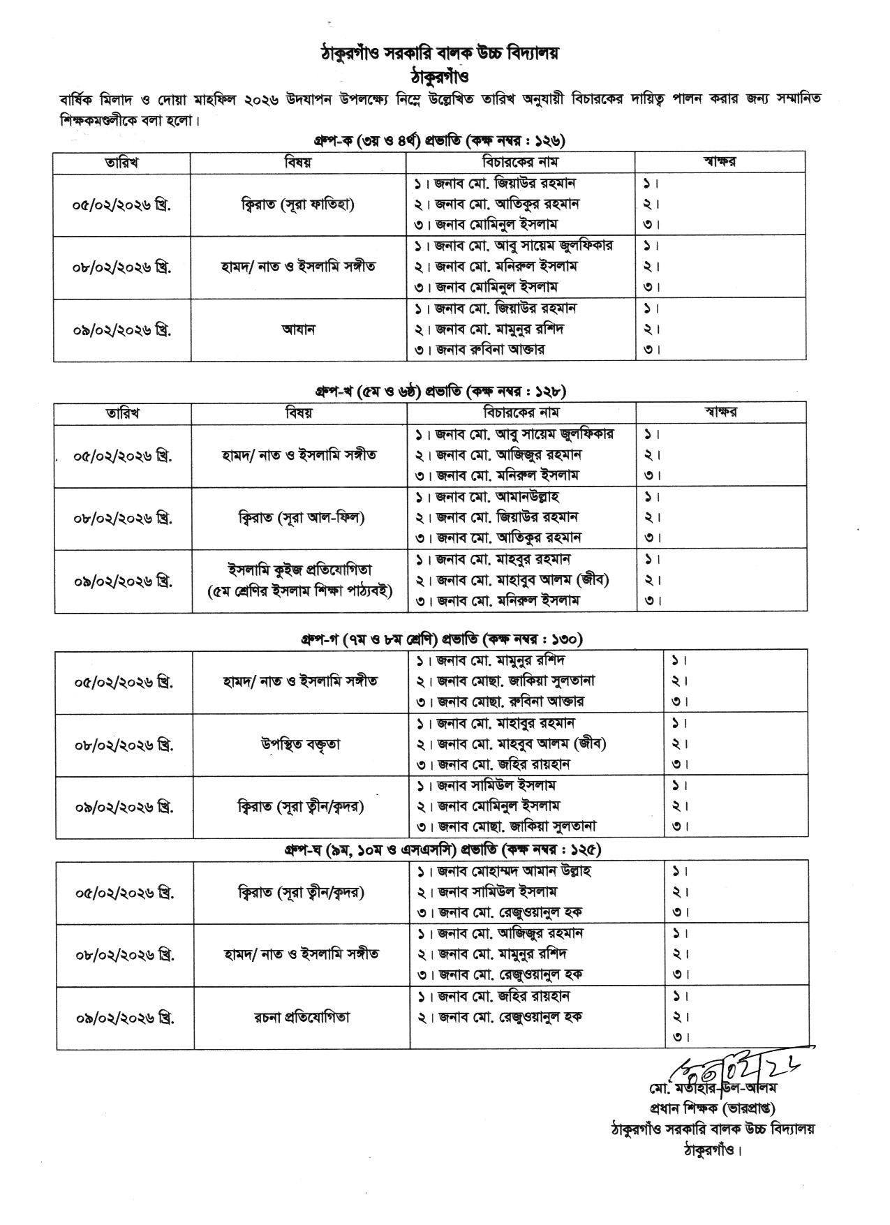 অর্ধ-বার্ষিক/প্রাক-নির্বাচনী পরীক্ষা-২০১৭ সময় সূচি