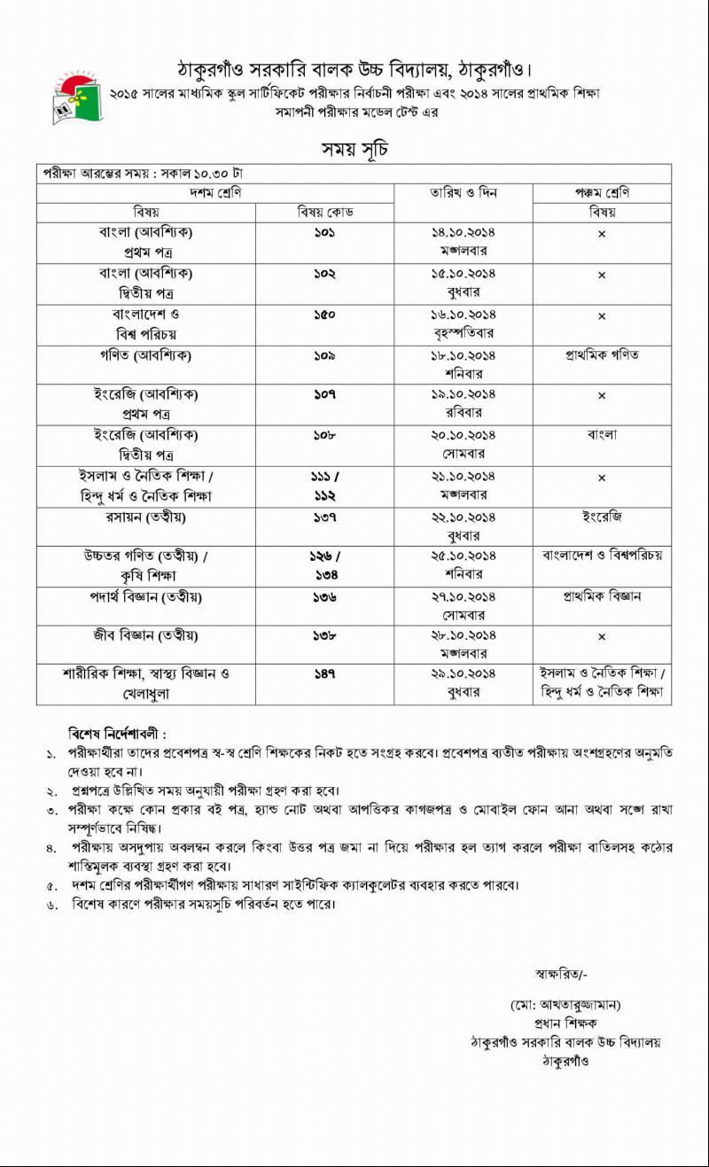 মডেল টেস্ট ও স্পেশাল মডেল টেস্ট-২০১৭ পরীক্ষার সময় সূচী