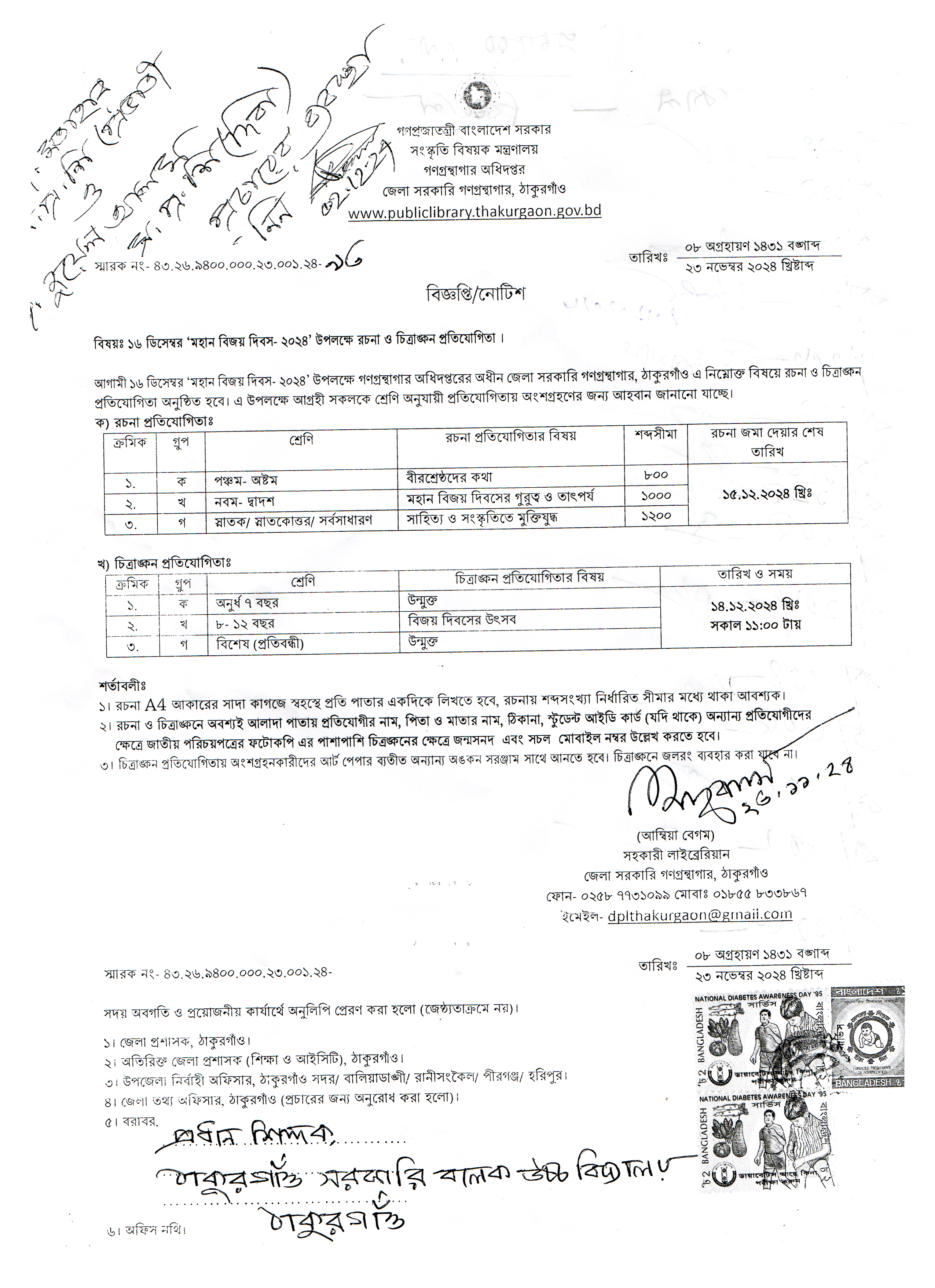 - ৩০ অক্টোবর২০২৫জাতীয় গ্রাফিতি ও চিত্রাঙ্কন প্রতিযোগিতা ২০২৫ এ উপজেলা ও জেলা পর্যায়ে ঠাকুরগাঁও সরকারি বালক উচ্চ বিদ্যালয় এর নবম ও দশম শ্রেণির শিক্ষার্থীদের সাফল্য।