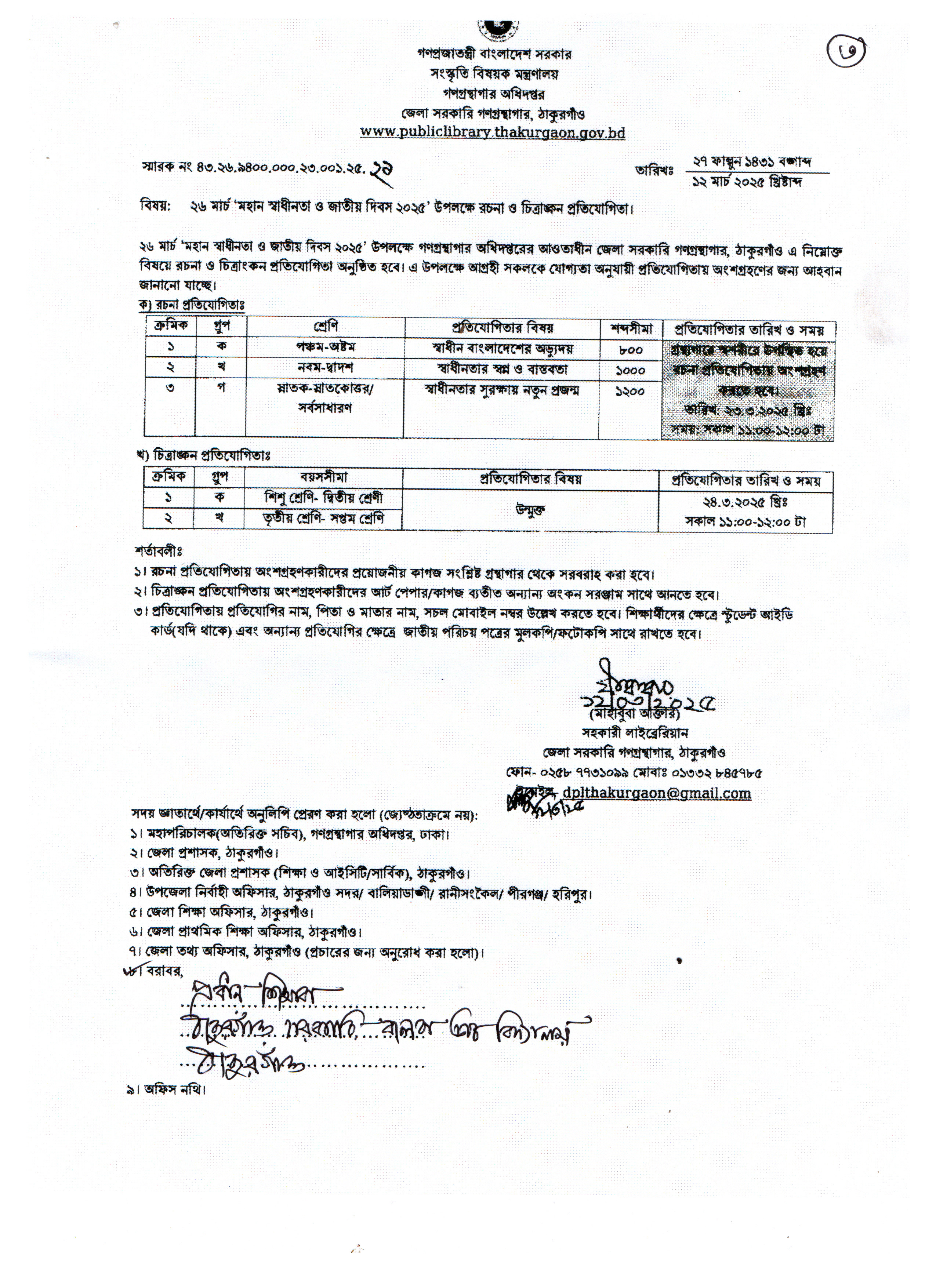 ২৬ মার্চ মহান স্বাধীনতা ও জাতীয় দিবস ২০২৫ উপলক্ষ্যে রচনা ও চিত্রাঙ্কন প্রতিযোগিতা।