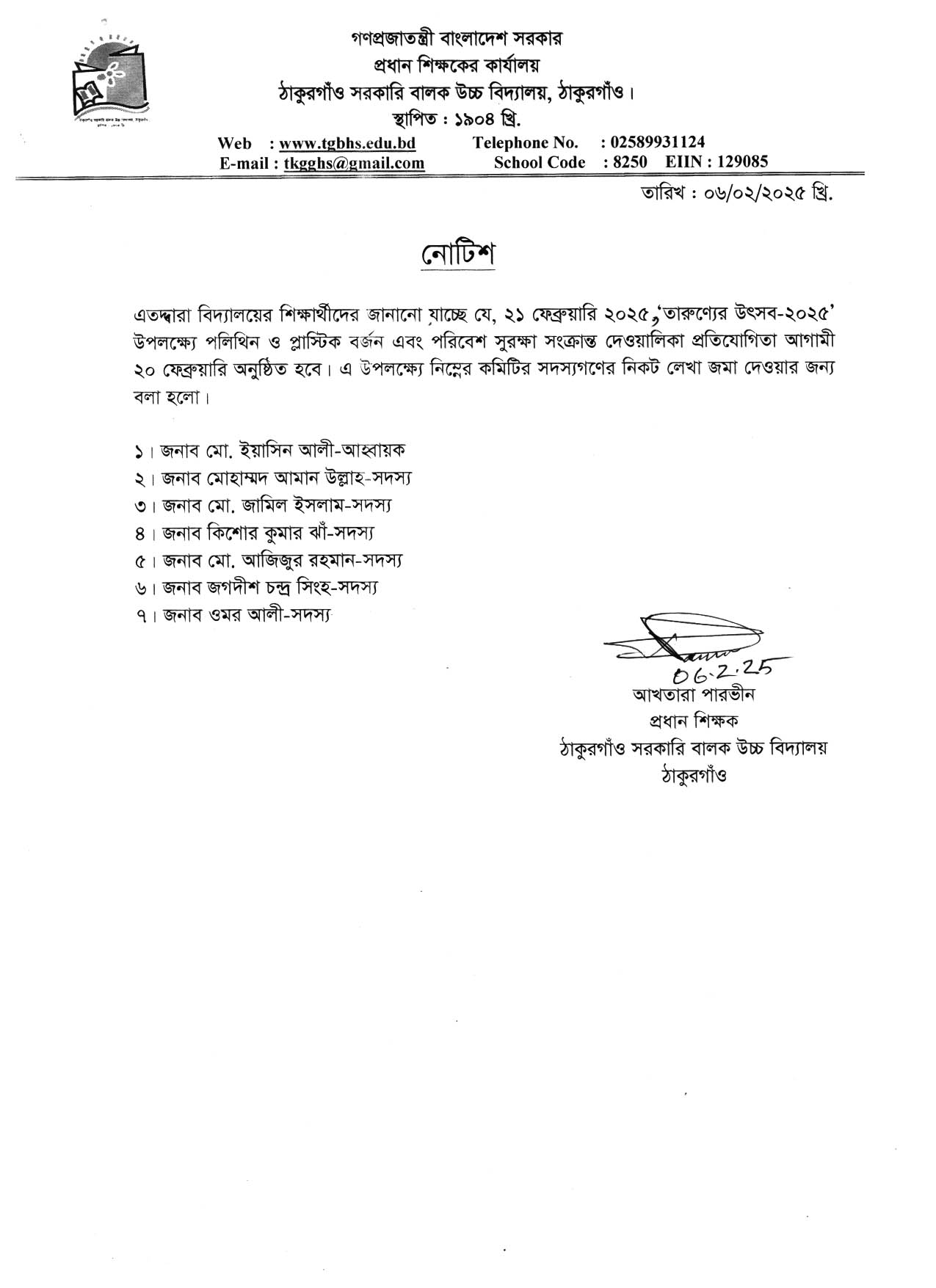 ২১ ফেব্রুয়ারি ২০২৫, ‘তারুণ্যের উৎসব-২০২৫’ উপলক্ষ্যে পলিথিন ও প্লাস্টিক বর্জন এবং পরিবেশ সুরক্ষা সংক্রান্ত দেওয়ালিকা প্রতিযোগিতা