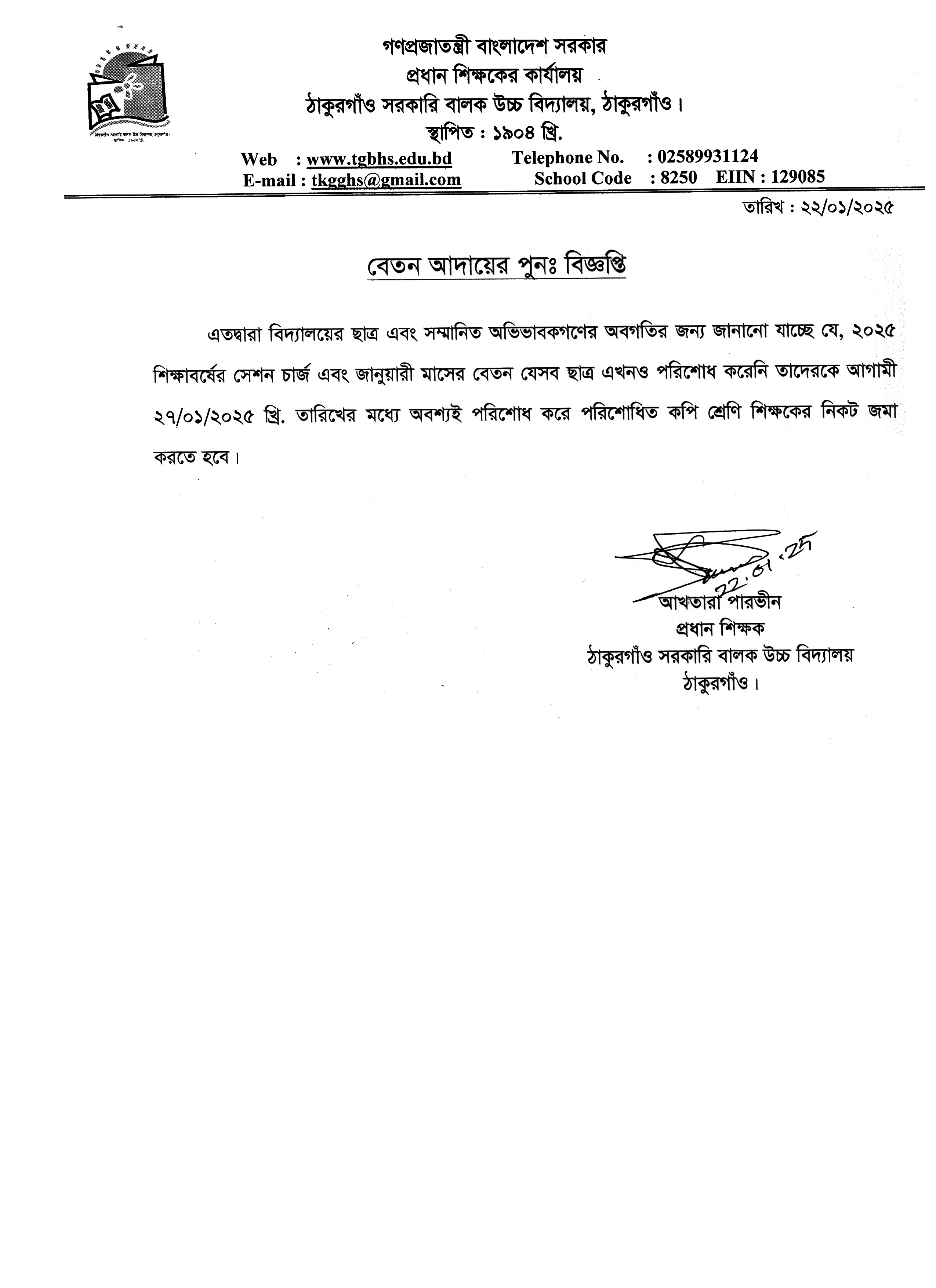 বেতন আদায়ের পুনঃ বিজ্ঞপ্তি