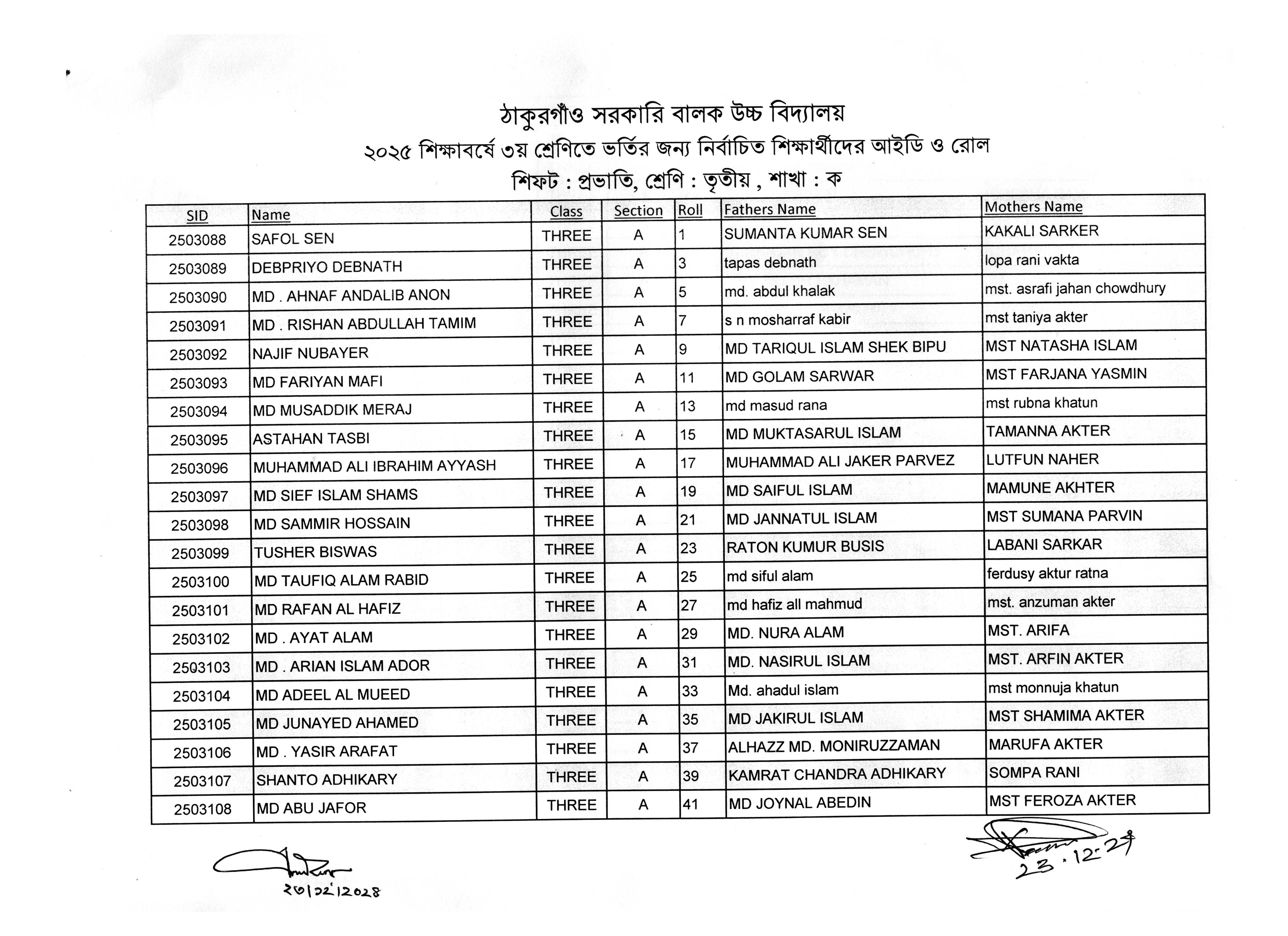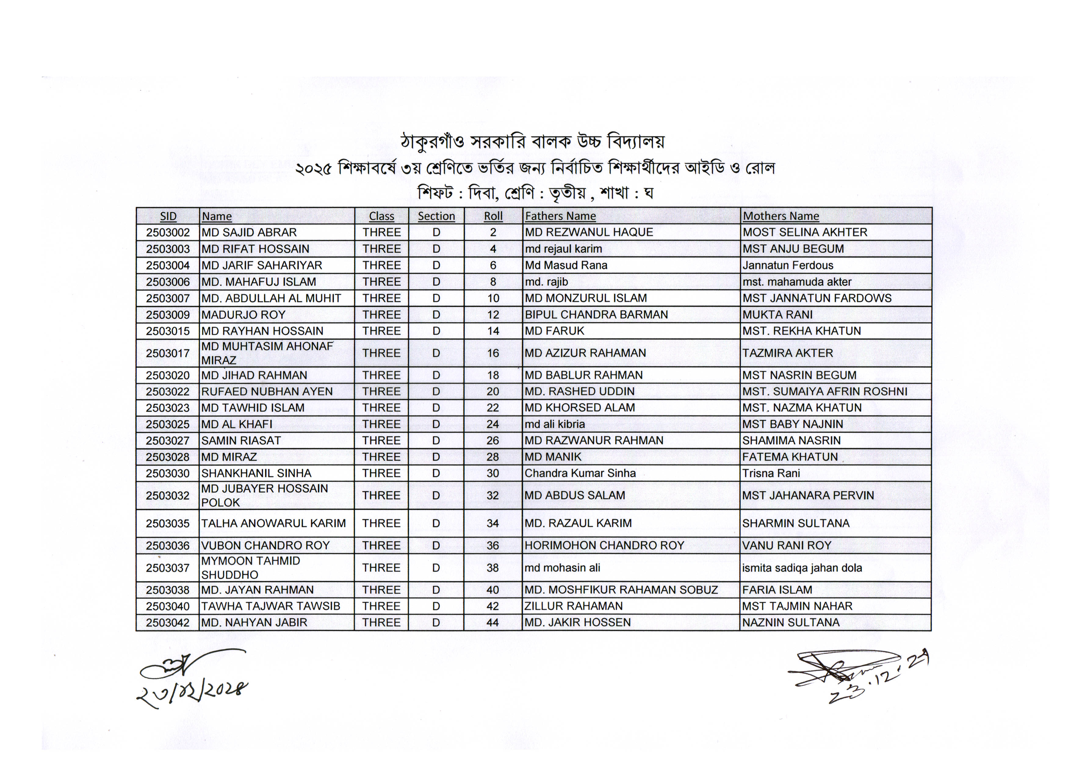 - ৩০ অক্টোবর২০২৫জাতীয় গ্রাফিতি ও চিত্রাঙ্কন প্রতিযোগিতা ২০২৫ এ উপজেলা ও জেলা পর্যায়ে ঠাকুরগাঁও সরকারি বালক উচ্চ বিদ্যালয় এর নবম ও দশম শ্রেণির শিক্ষার্থীদের সাফল্য।