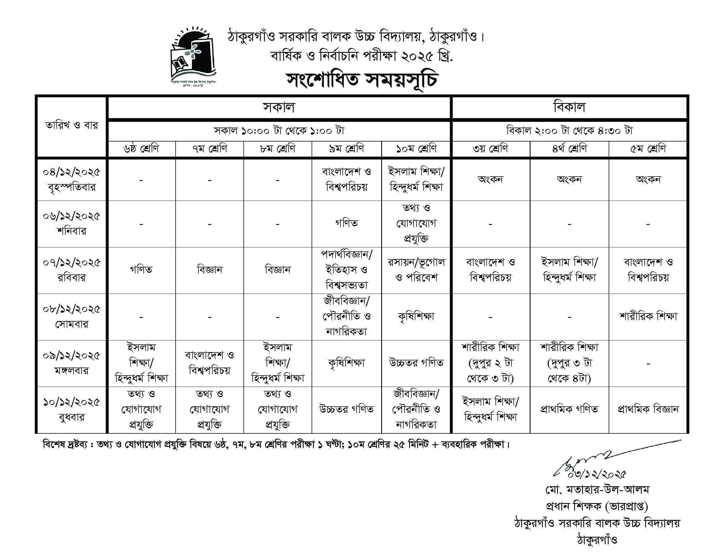 বার্ষিক ও নির্বাচনি পরীক্ষা ২০২৫ এর সংশোধিত সময়সূচি