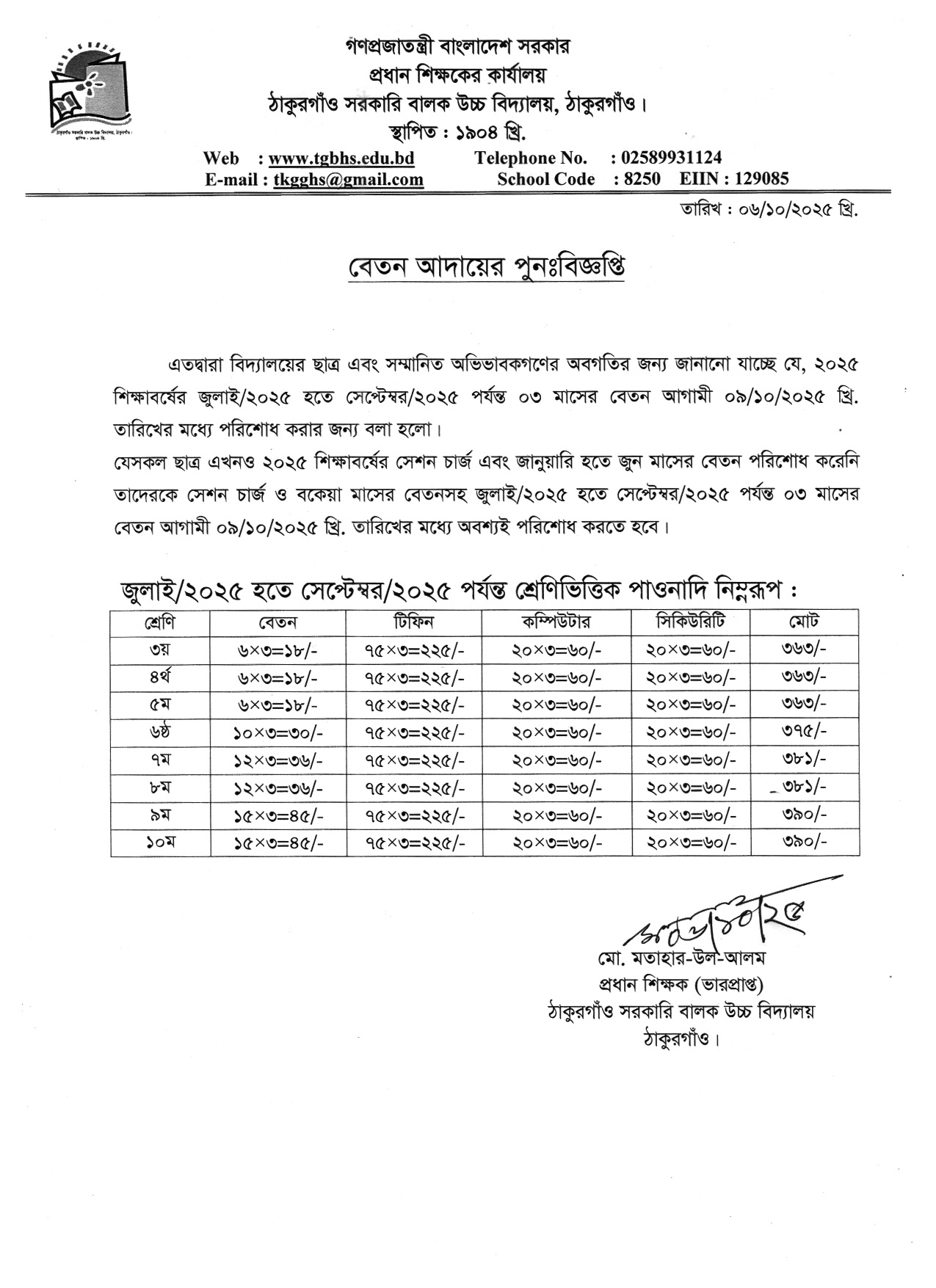 বেতন আদায়ের পুনঃ বিজ্ঞপ্তি