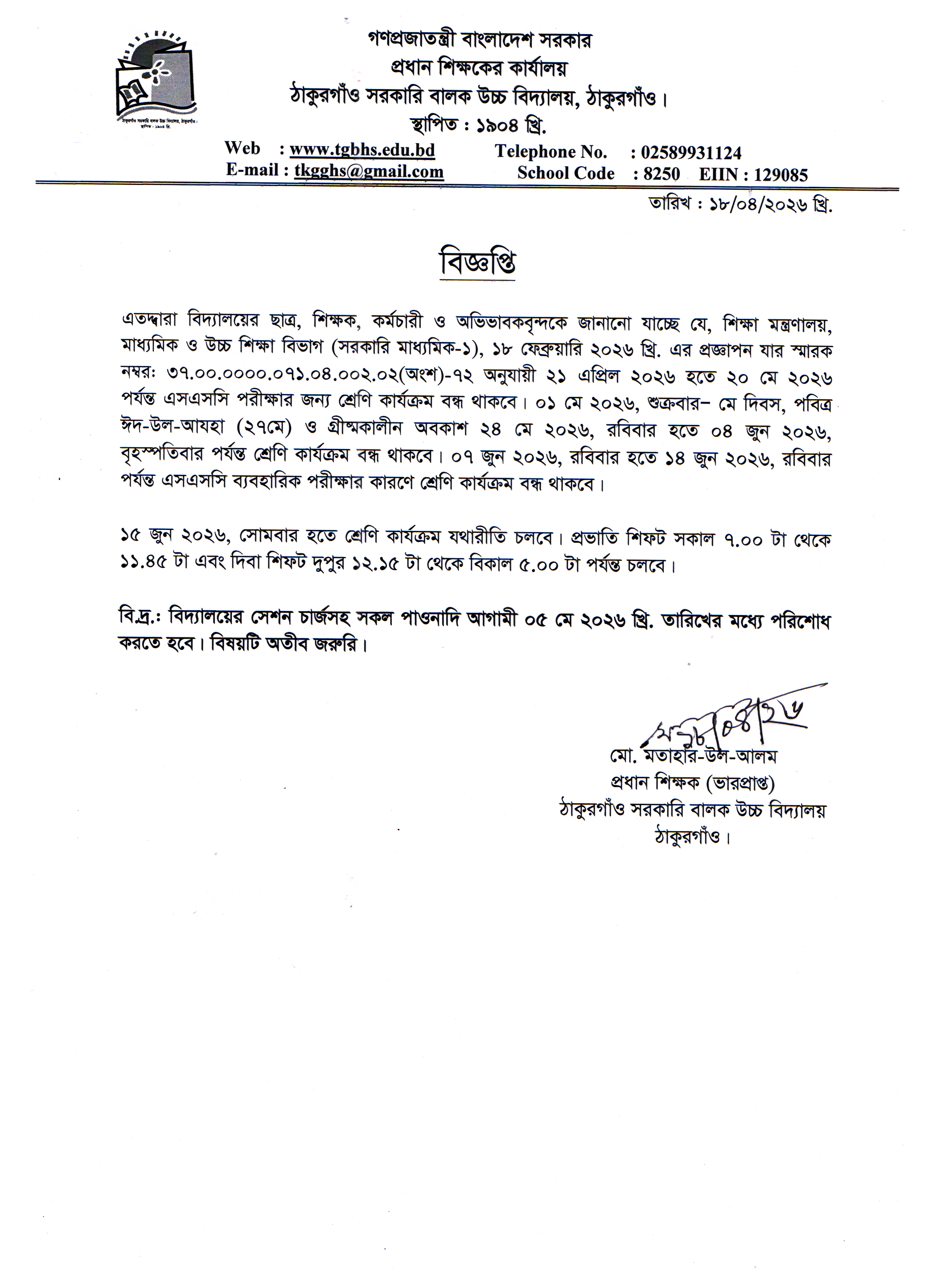 বিদ্যালয়ের ছুটি সংক্রান্ত নোটিশ