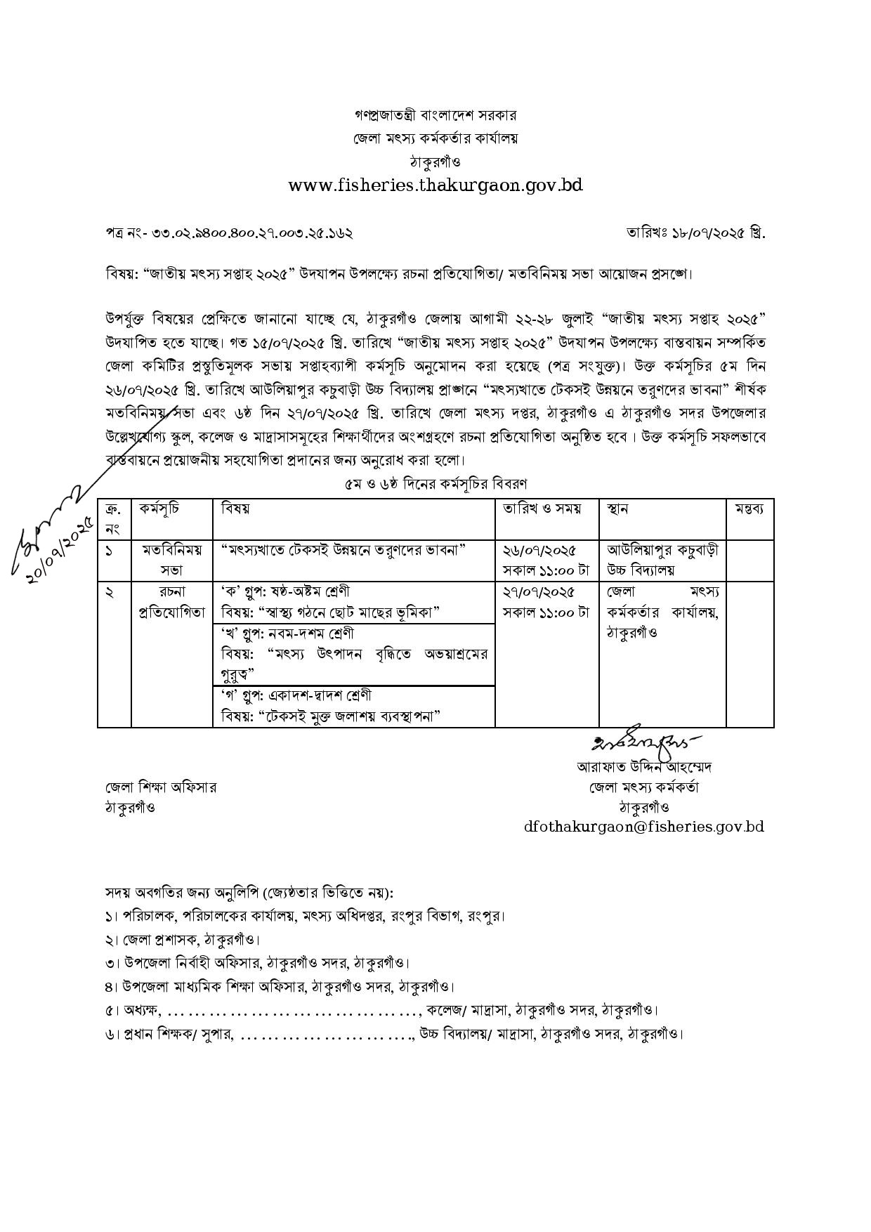 জাতীয় মৎস্য সপ্তাহ ২০২৫ উপলক্ষ্যে রচনা প্রতিযোগিতা