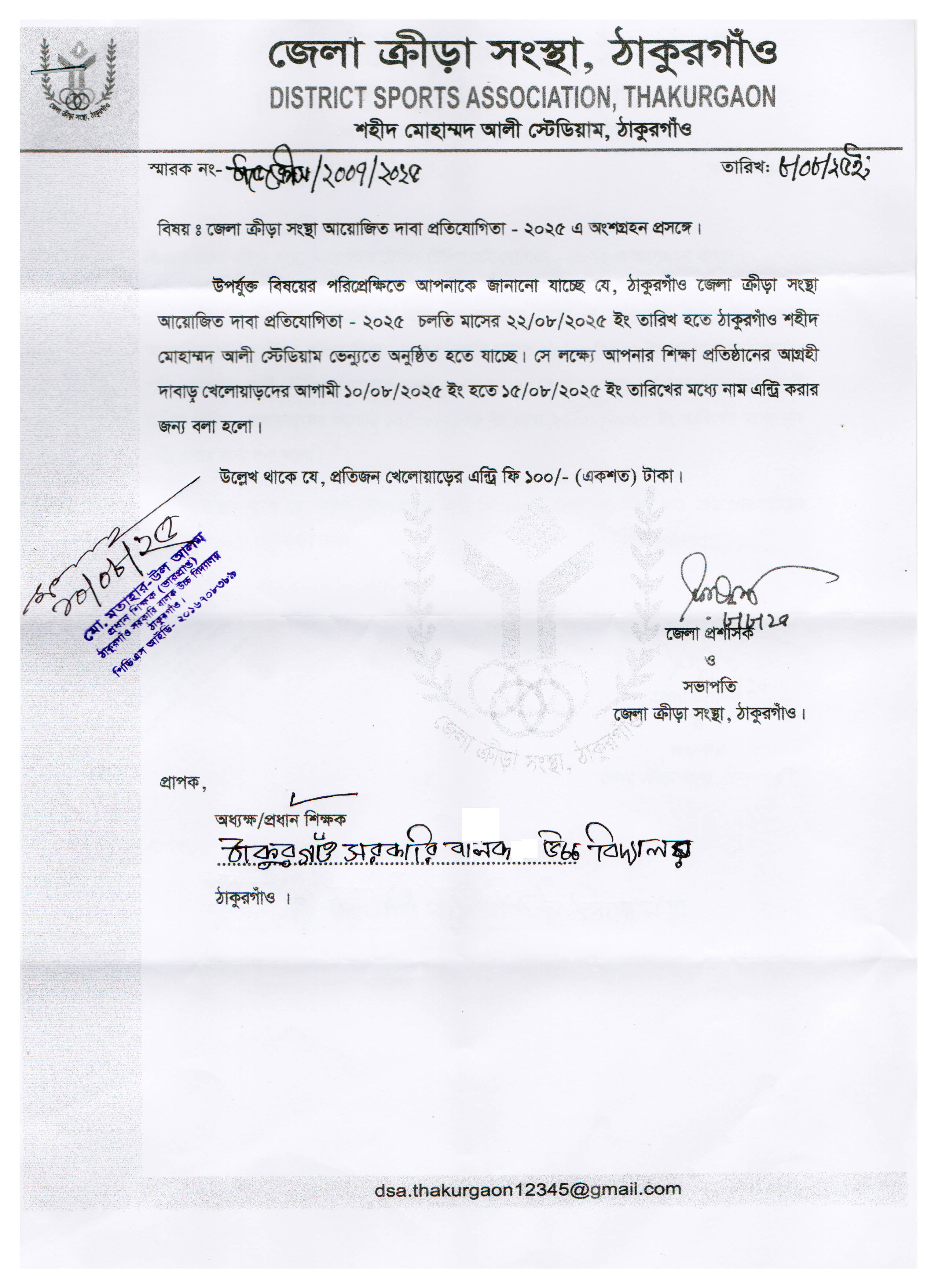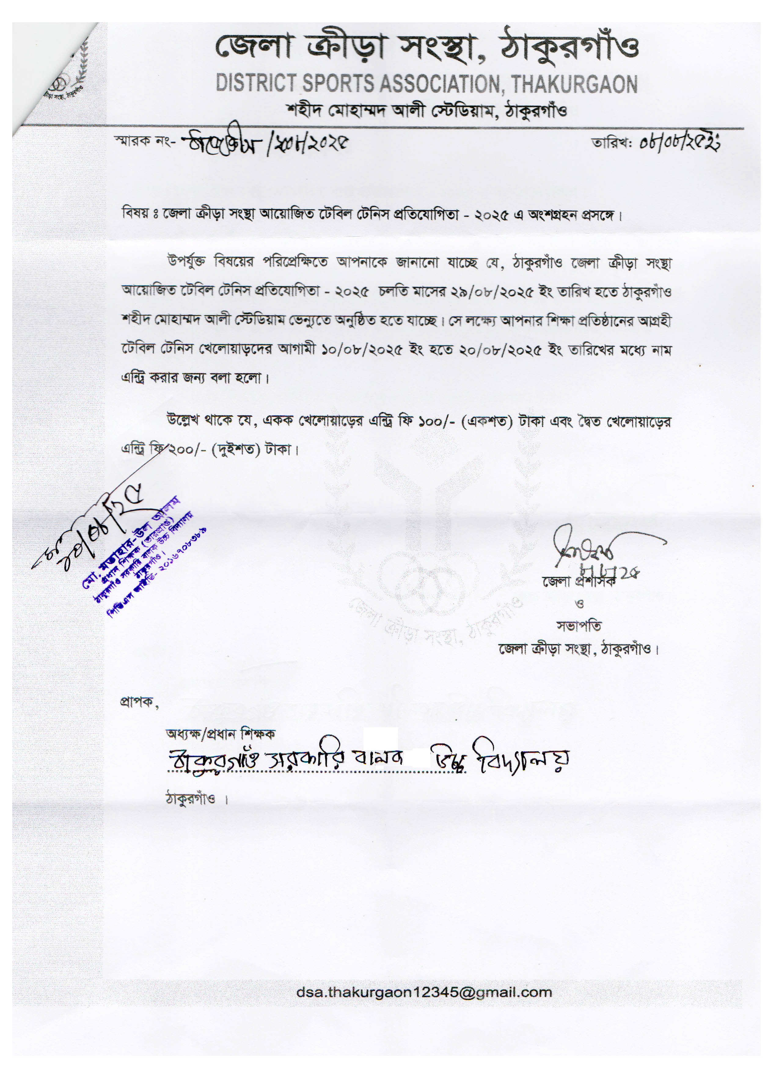 জেলা ক্রীড়া সংস্থা আয়োজিত দাবা ও টেবিল টেনিস প্রতিযোগিতা ২০২৫