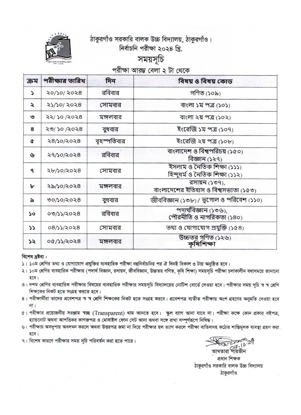 বিদ্যালয়ের শৃঙ্খলা সংক্রান্ত বিজ্ঞপ্তি