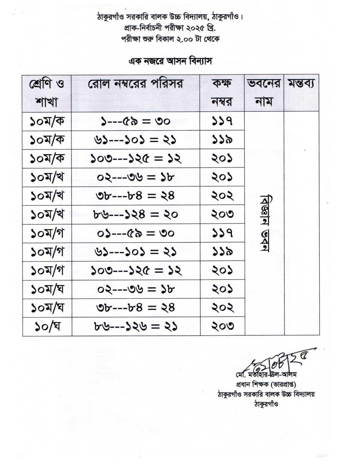 প্রাক-নির্বাচনি পরীক্ষা ২০২৫ এর একনজরে আসন বিন্যাস