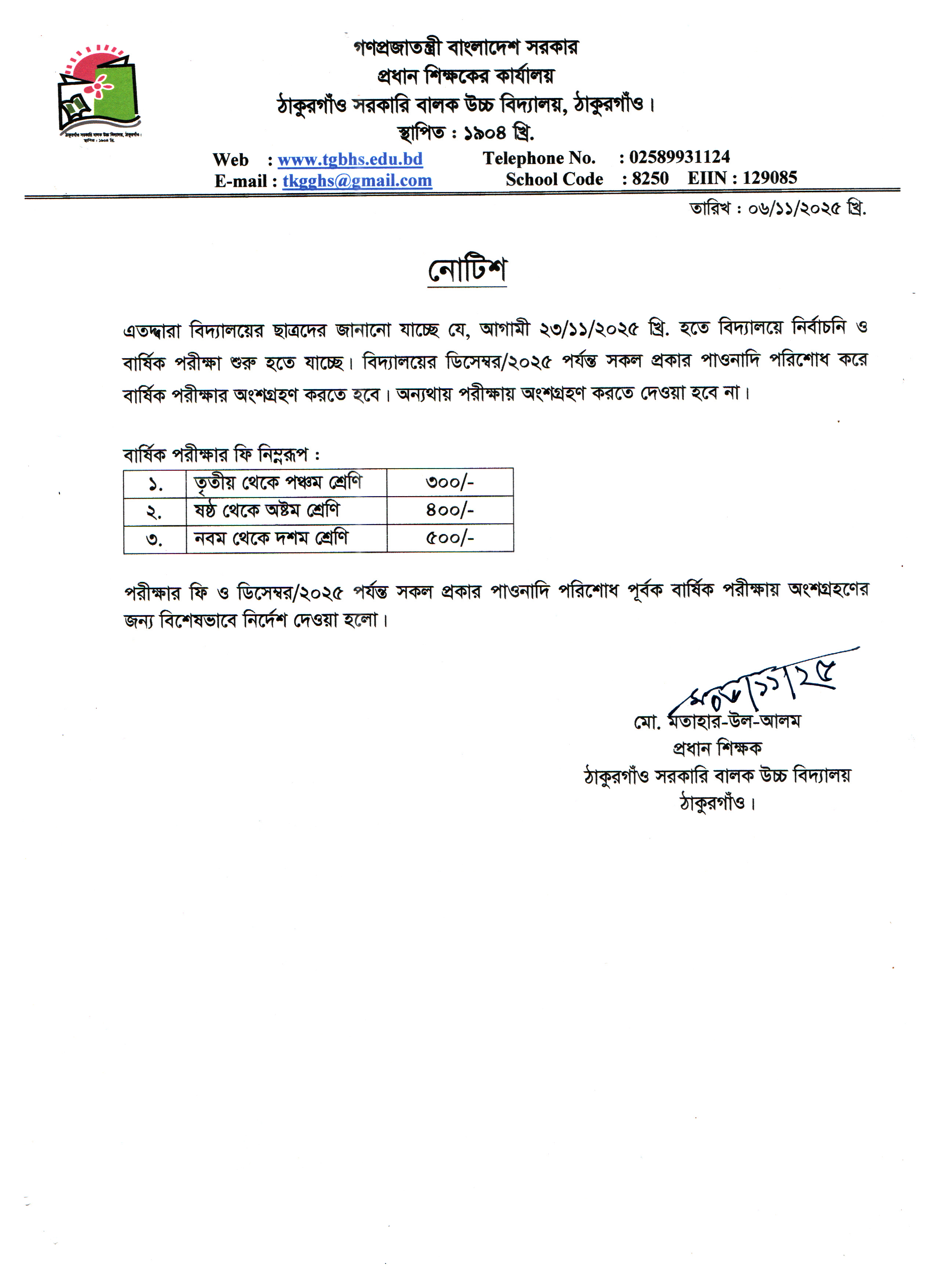 পরীক্ষার ফি ও বকেয়া বেতন পরিশোধ সম্পর্কিত নোটিশ