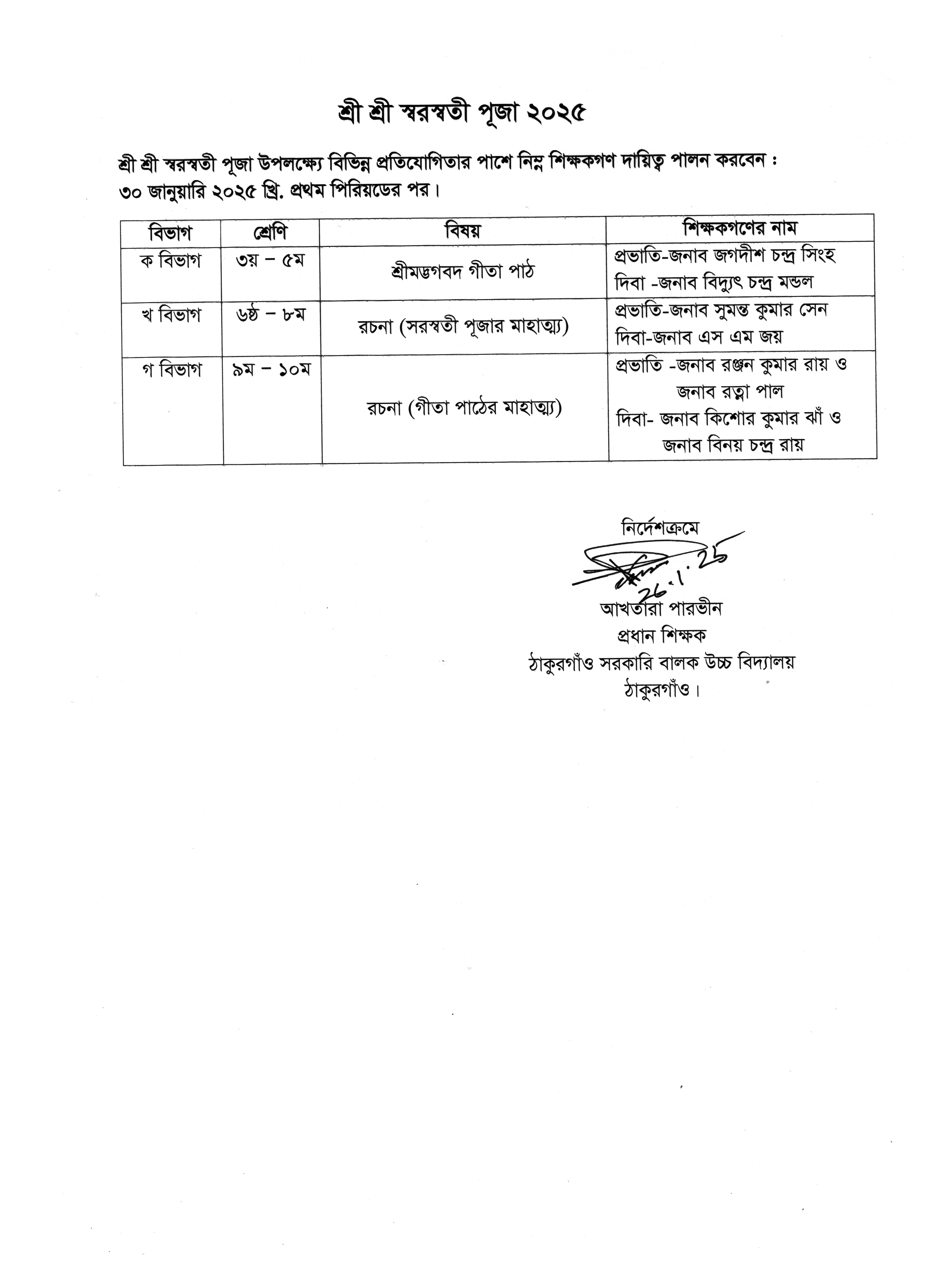 শ্রী শ্রী সরস্বতী পূজা উপলক্ষ্যে বিভিন্ন প্রতিযোগিতা :