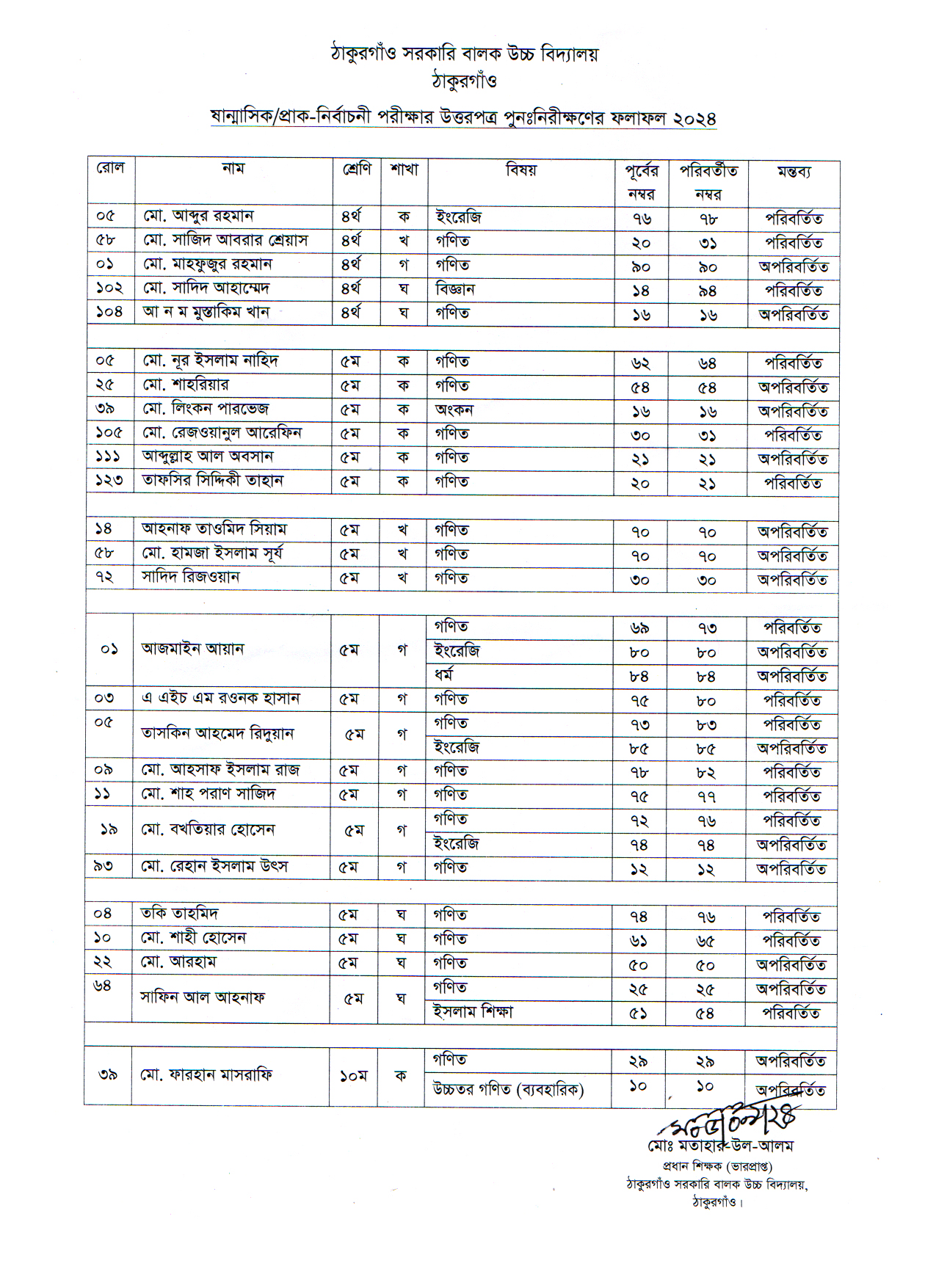 ষান্মাসিক/প্রাক-নির্বাচনী পরীক্ষার উত্তরপত্র পুনঃনিরীক্ষণের ফলাফল প্রকাশ ২০২৪