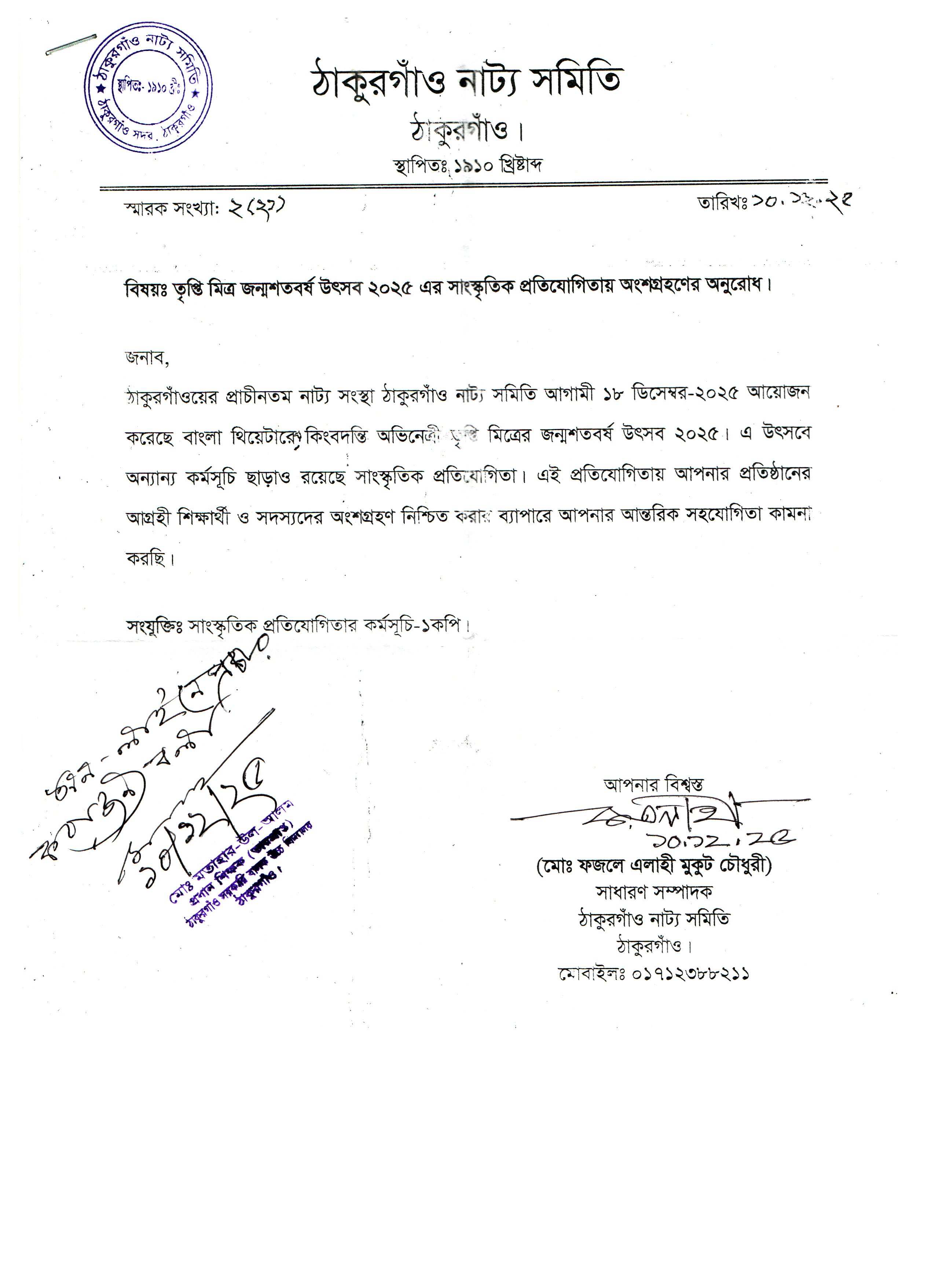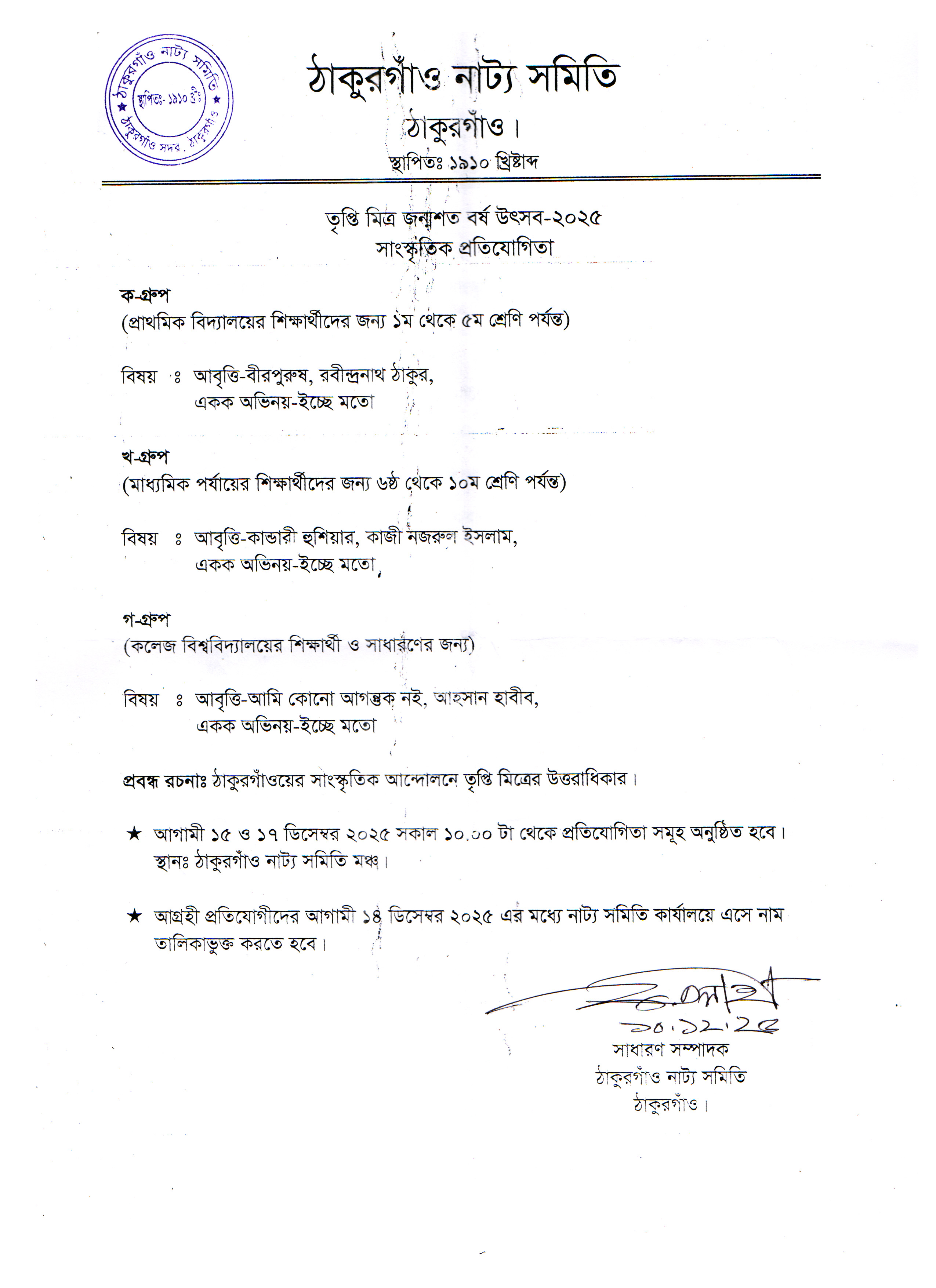 তৃপ্তি মিত্র জন্মশতবর্ষ উৎসব ২০২৫ এর সাংস্কৃতিক প্রতিযোগিতায় অংশগ্রহণ।